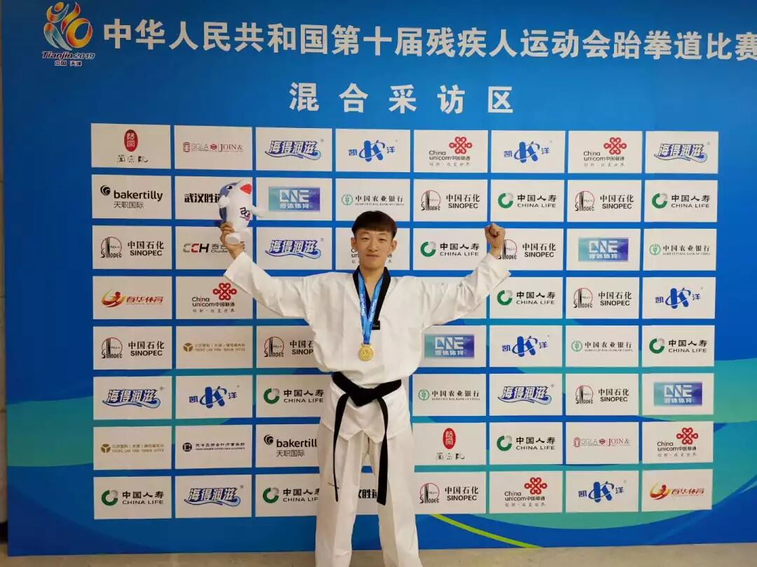 由中国残疾人联合会和国家体育总局联合主办的中华人民共和国第十届残疾人运动会暨第七届特殊奥林匹克运动会跆拳道比赛于5月17日至5月21日在天津理工大学体育馆举行。在KP60男子58公斤级的角逐中,内蒙古运动员赵振宏一路过关斩将,获得金牌!