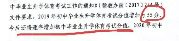2月20日,记者采访了江西省教育厅,证实今年江西省初中毕业生升学体育考试分值由50分增加为55分,明年60分。