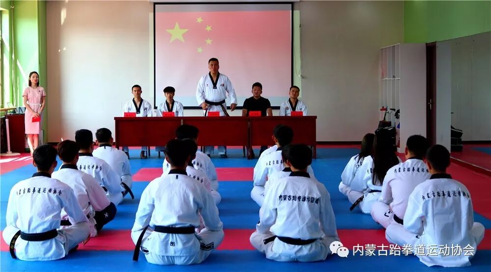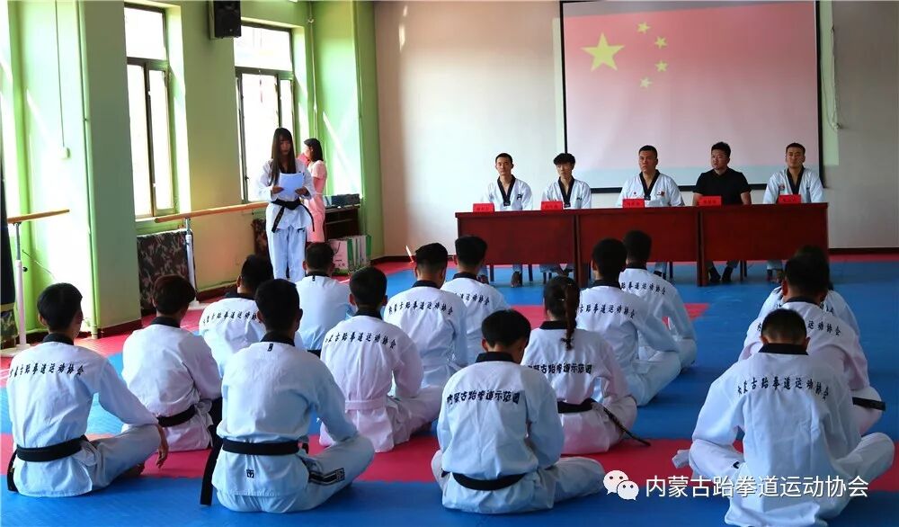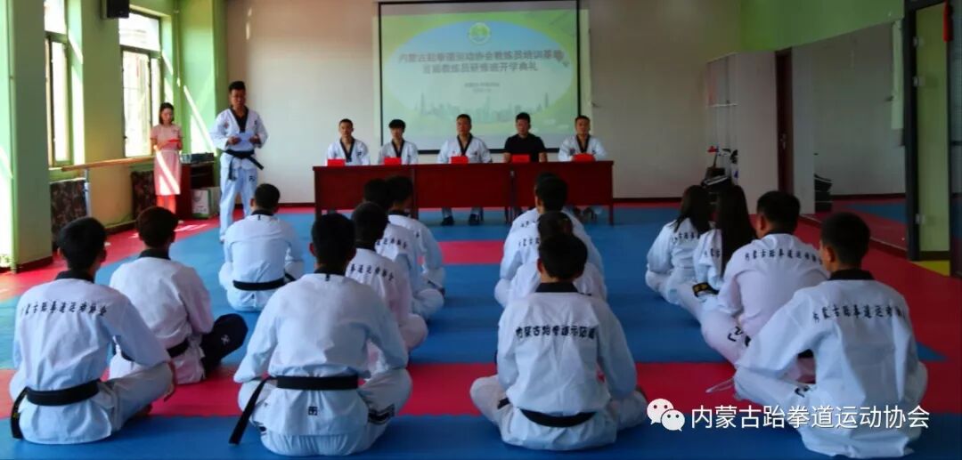 2019年7月8日内蒙古跆拳道运动协会教练员培训基地首届教练研修班正式开学!出席此次开学典礼的嘉宾有: