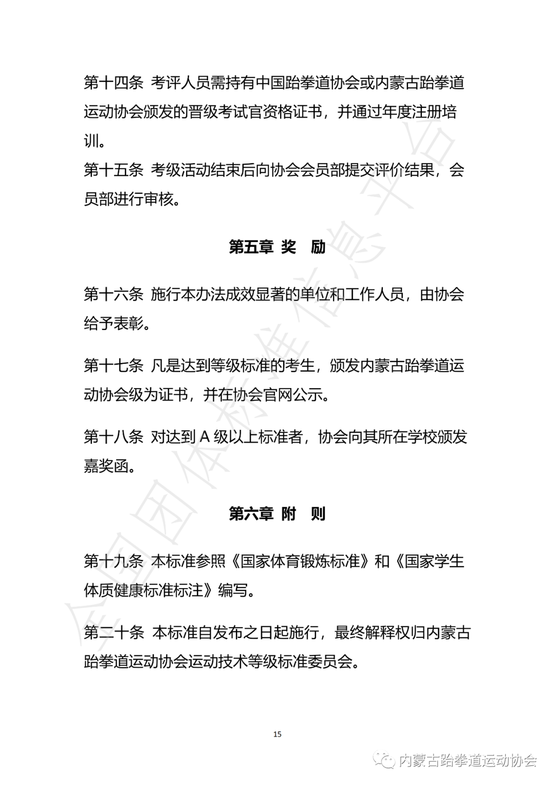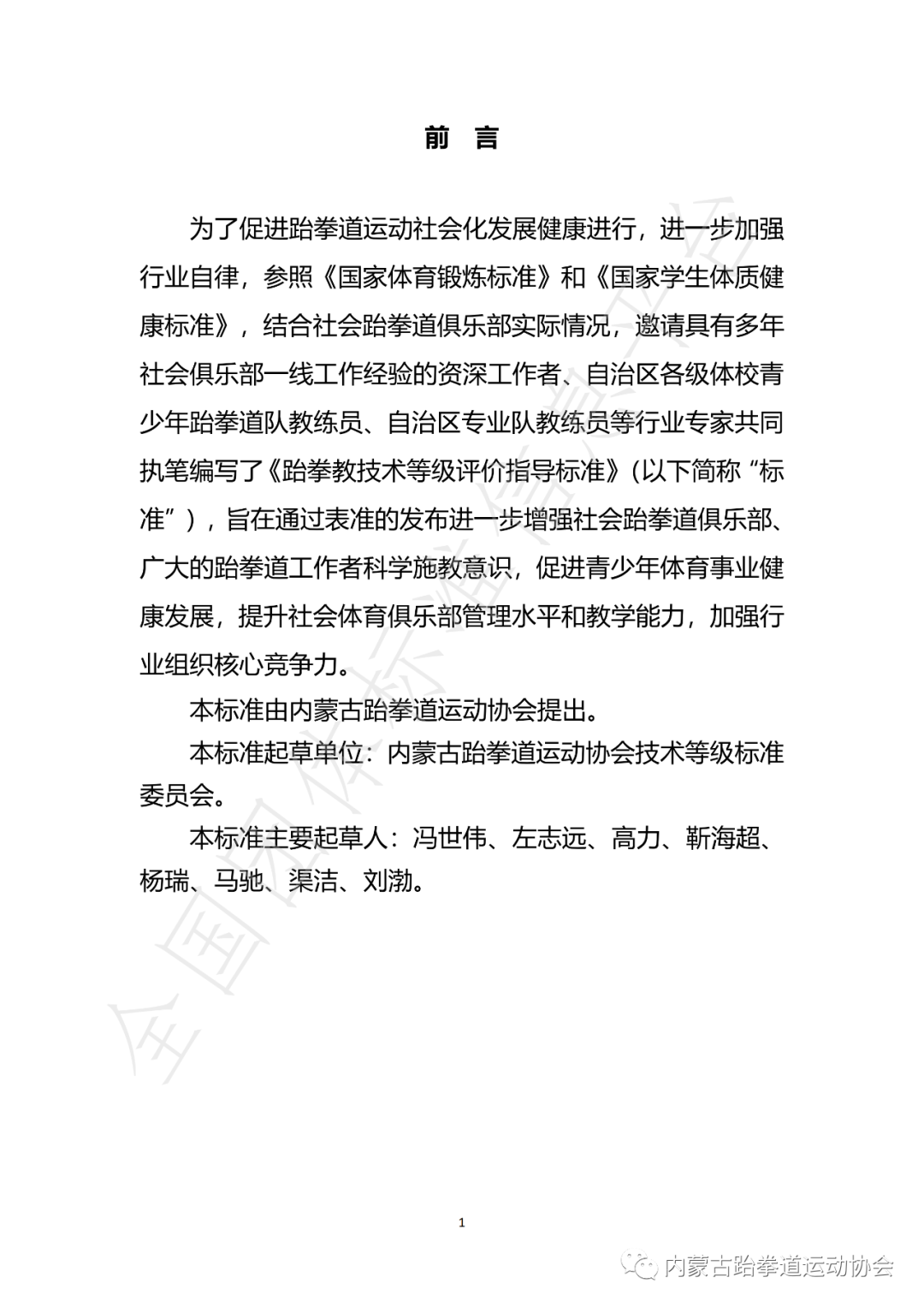 为引导自治区范围内社会跆拳道俱乐部与市级体校、自治区优秀运动队教学业务衔接,教学内容充分适应竞赛规则变化,发挥社会跆拳道俱乐部人才选拔、培养、输送等重要作用,我协会组织业内各级资深专业人士共同执笔编写了《跆拳道技术等级评价指导标准》。
