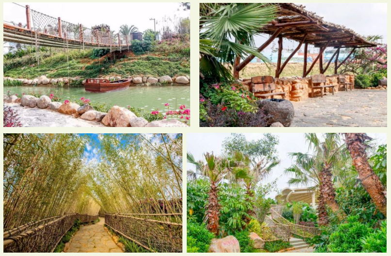 天隆三千海斥巨资打造射雕桃花岛,由水景观、雅韵园、神仙洞、积翠亭、桃花苑、九曲回廊、湖岸风情、听曲楼阁、竹林迷踪、古树造型、自然山石、奇花异草等近50多个分景观构成。内海水系所形成的湖心岛,岛上建有桃花洞,贝壳荼室,用草编和藤条构建的餐厅酒吧,水上廊桥,叠水瀑布、无边泳池等,让滨海度假生活更加丰满。创意源于金庸《射雕英雄传》中的桃花岛, “桃花影落飞神剑,碧海潮生按玉箫”,旨在打造一个如梦如幻的岛上生活,给你犹如世外桃源般的体验。
