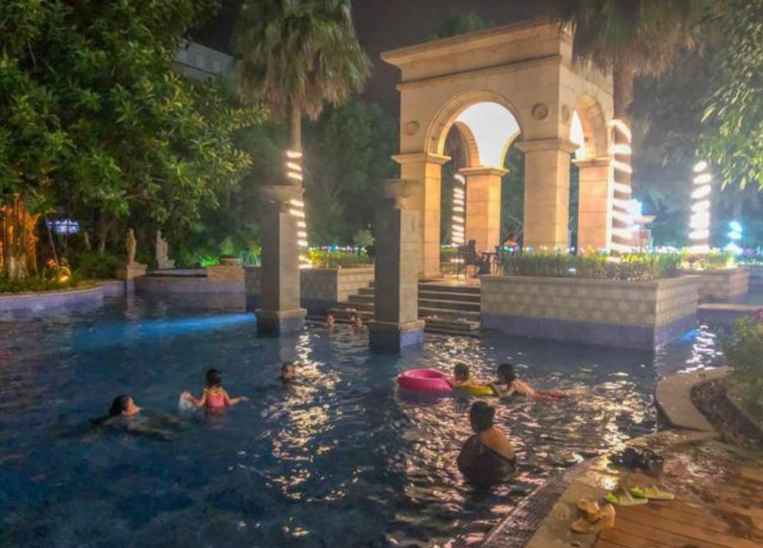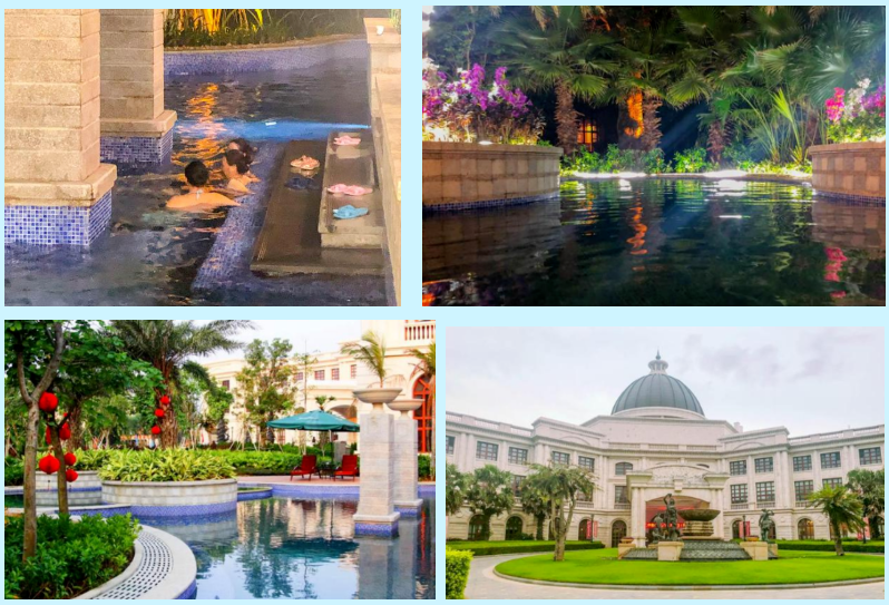 天隆三千海温泉浴场由石像、栏杆、小径、温泉池、凉亭、雕塑全石材多景观打造建设而成,石材工艺均能经受500年风雨。泡一次温泉,经历一次精神、肉体的洗礼。五个的温泉池被古树与鲜花包围,池子上方冒着热气,非常有意境,犹如与世隔绝的净土。泡温泉把体内的寒气、湿气排出体外。三千海的万年古海水温泉来自地下 1100 米深的云母花岗岩中处汲取天然矿物温泉。温泉里含有锂、锶、锌、硒、钙等几十种对人体有益的微量元素,对多种疾病有辅助疗效。