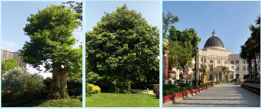 天隆三千海古树园林,均由百年的胭脂树、印度紫檀、紫薇树、凤凰树、香樟树、木棉树等180多种古树,更有树龄达千年的菩提树、苏铁等。丰富种类与珍贵品种,与“天下第一滩”构成独具北海魅力的“绝代双骄”。漫步其间,脚下绿荫盖地、芳草如锦,远近纵横有序、错落有致的一棵棵威严的百年古树顶着擎天的华盖,昂然挺立。三千海千年古树园林是远古的精灵和圣人,传承着博大精深的传统文明、承载着浓厚的佛教文化气息,与三千海百年建筑作品文化互为融合,充实着三千海的“家族记忆”。