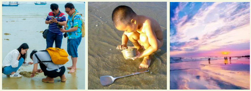 清晨,在天隆三千海私享沙滩段,一个小箩筐一把小铲子带着兴致勃勃的来到退潮了的海滩上,挖海货,有螃蟹、贝类等。海上轻吹夏日风,游人不惧热蒸腾;欢声笑语争鲜贝,追却童心到水中。松软的沙滩,慵懒的阳光,欢快的笑声,还有那一行行或深或浅赶海人的脚印。迎接旭日初升,目送夕阳归去,和他们一起看潮起潮落,云巻云舒,一道靓丽的风景。