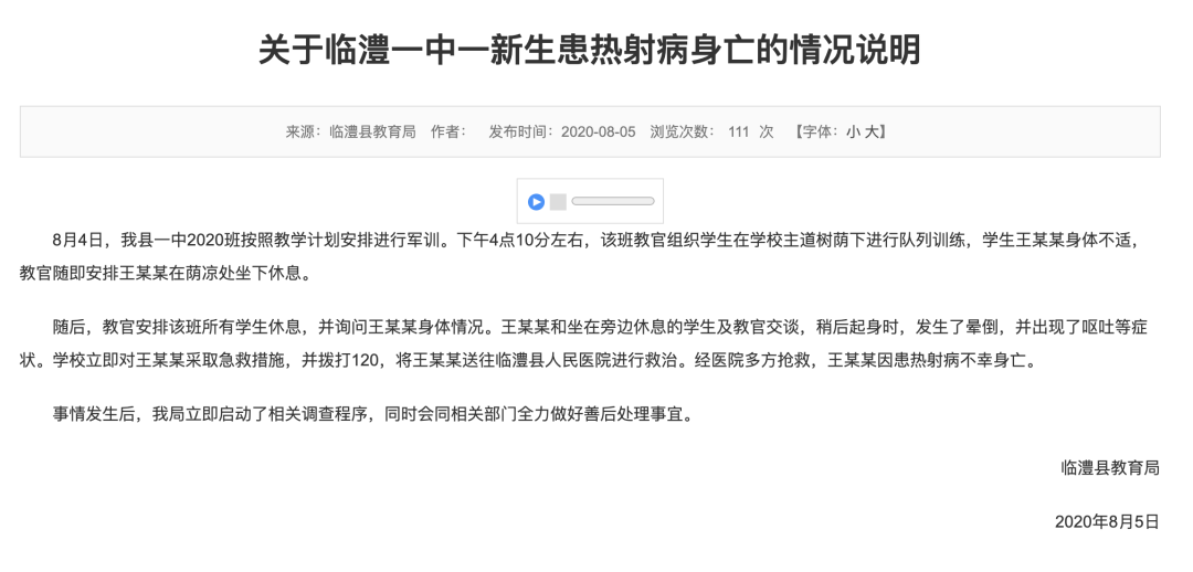 粗略搜索了一下,历年来因为军训出意外的事情还真不少。
