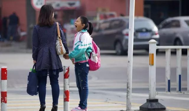 起码的睡眠无法保证,一位学生上学路上疲惫地打起了呵欠。